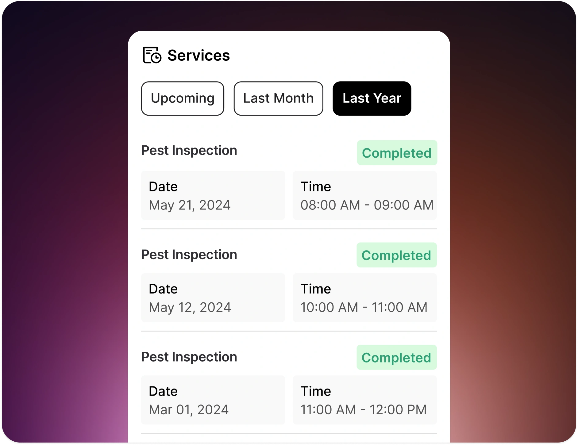 OnCrew's built-in CRM keeps every customer detail organized in one place: contact information,service history, special requests, and preferences. Build stronger customer relationships and never forget important details again.